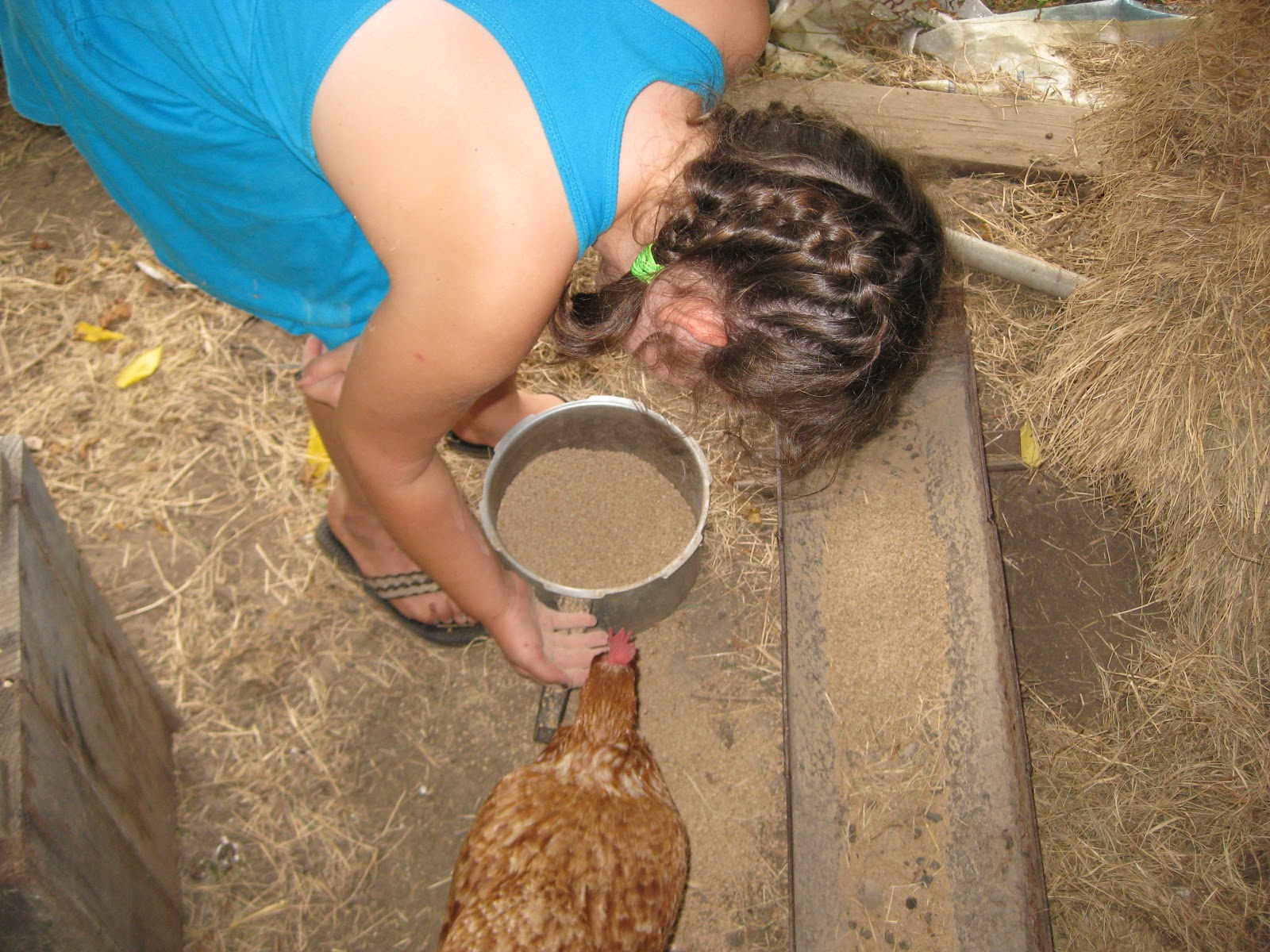 Friday was a great day. Joe and Brooke offered to let us come over and swim but when I left work it was lightening and raining a little so we didn't go. The storm passed quickly so we should have just gone. Oh well, hindsight is always 20/20! When I got off work and went to pick up my girls Paili wanted me to go with her to feed the chicken, Sweetie.